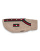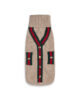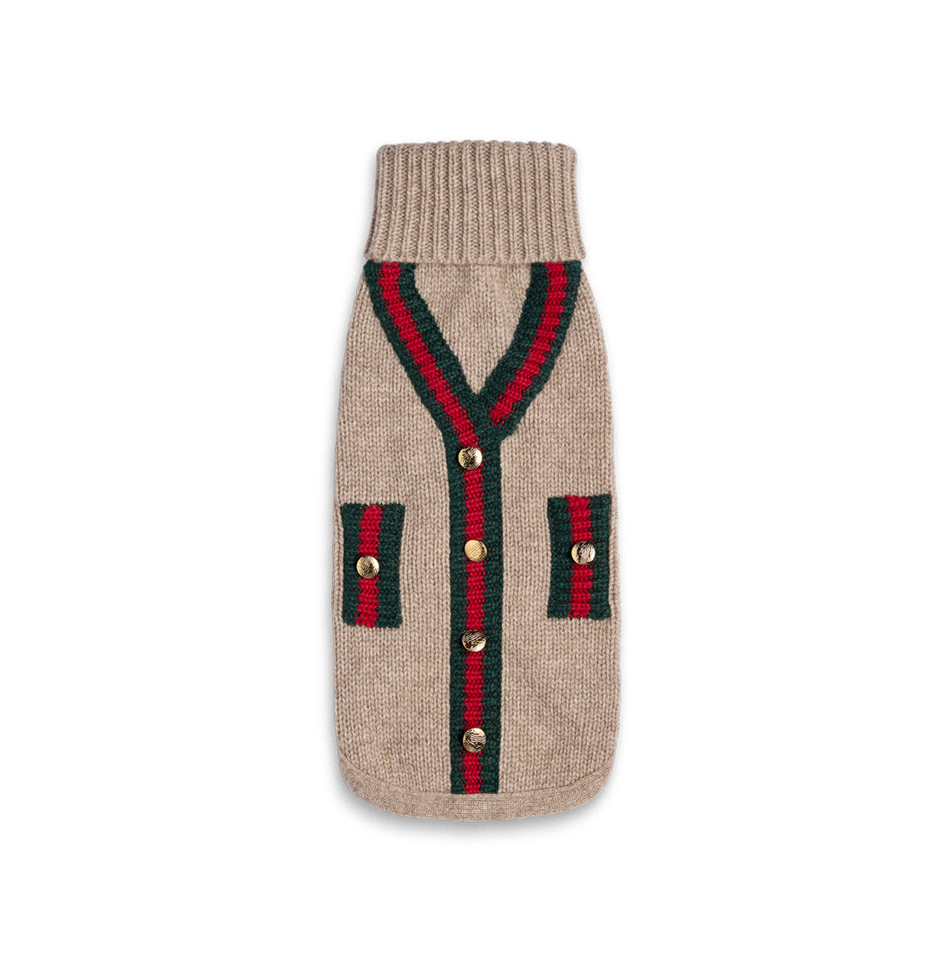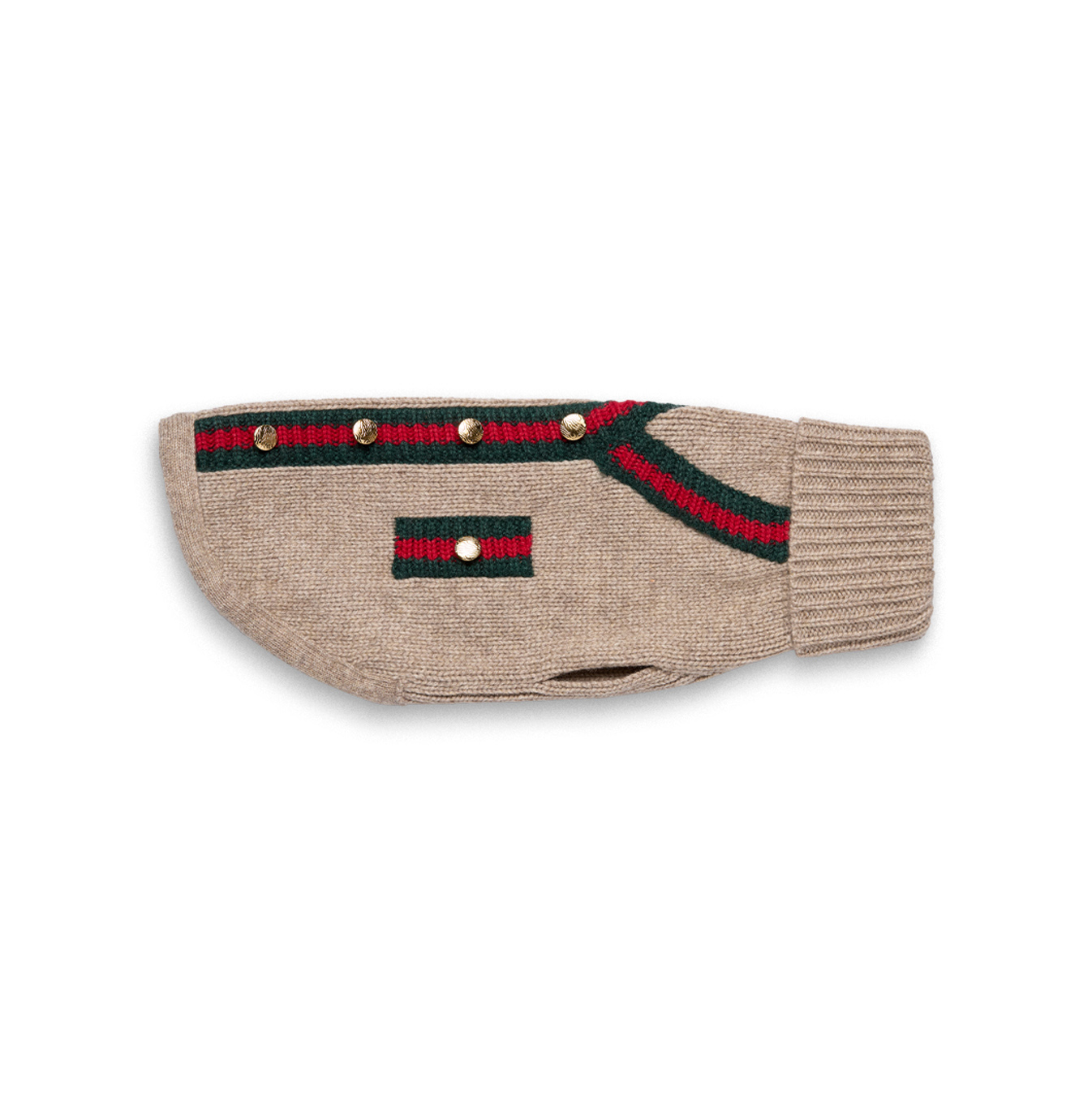 Cappottino Collo alto col. Tortora con profili Verde e Bordeaux. Bottoni in metallo oro. Realizzato con filato di pelo Hircus, nobile Cachemire proveniente dalla Mongolia.