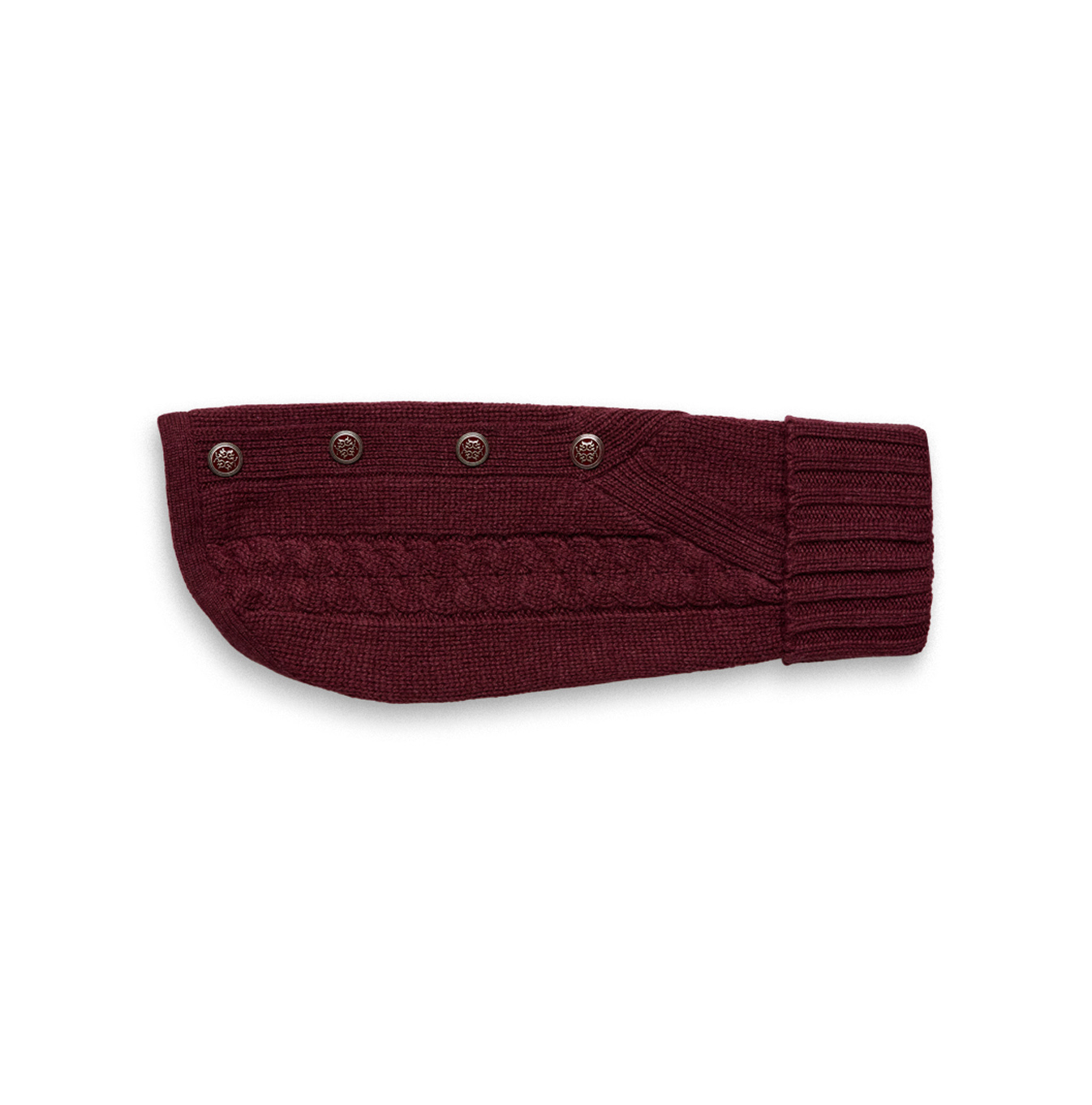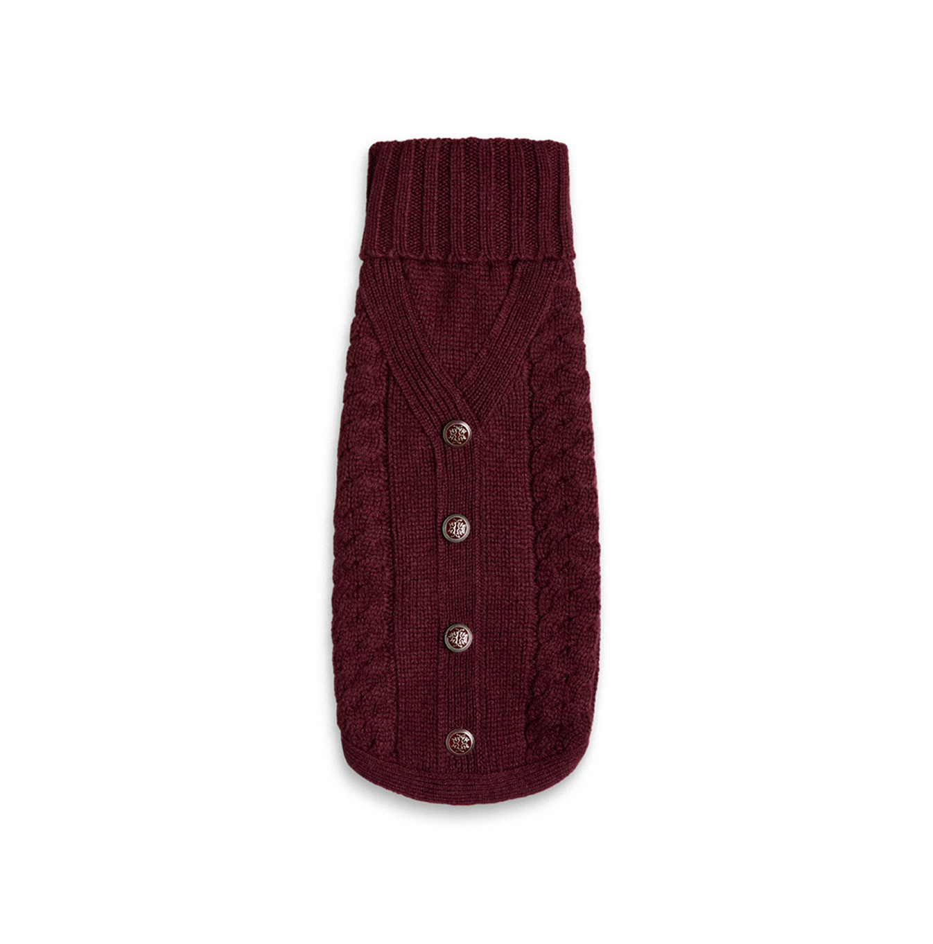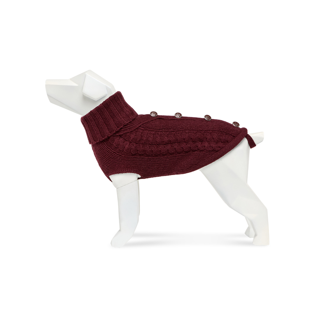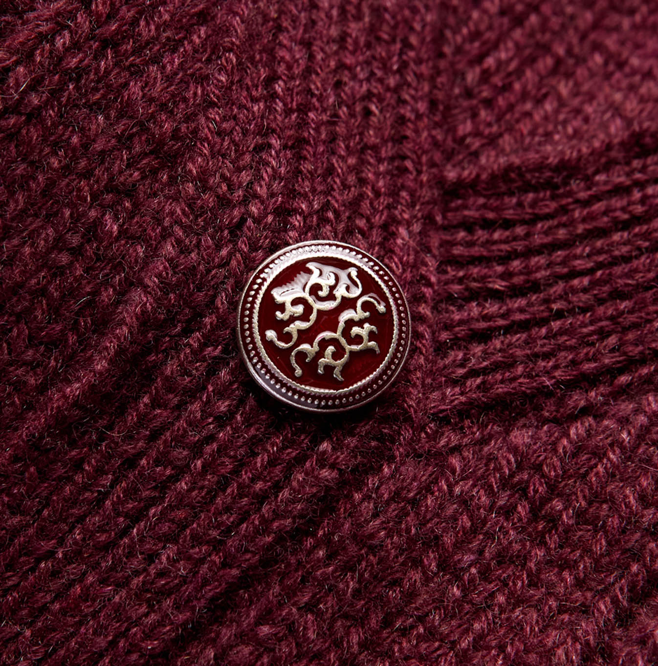 Cappottino Collo alto col. Bordeaux Lava con lavorazione treccine ai lati. Bottoni smaltati bordeaux con disegno e profilo argento. Realizzato con filato di pelo Hircus, nobile Cachemire proveniente dalla Mongolia.