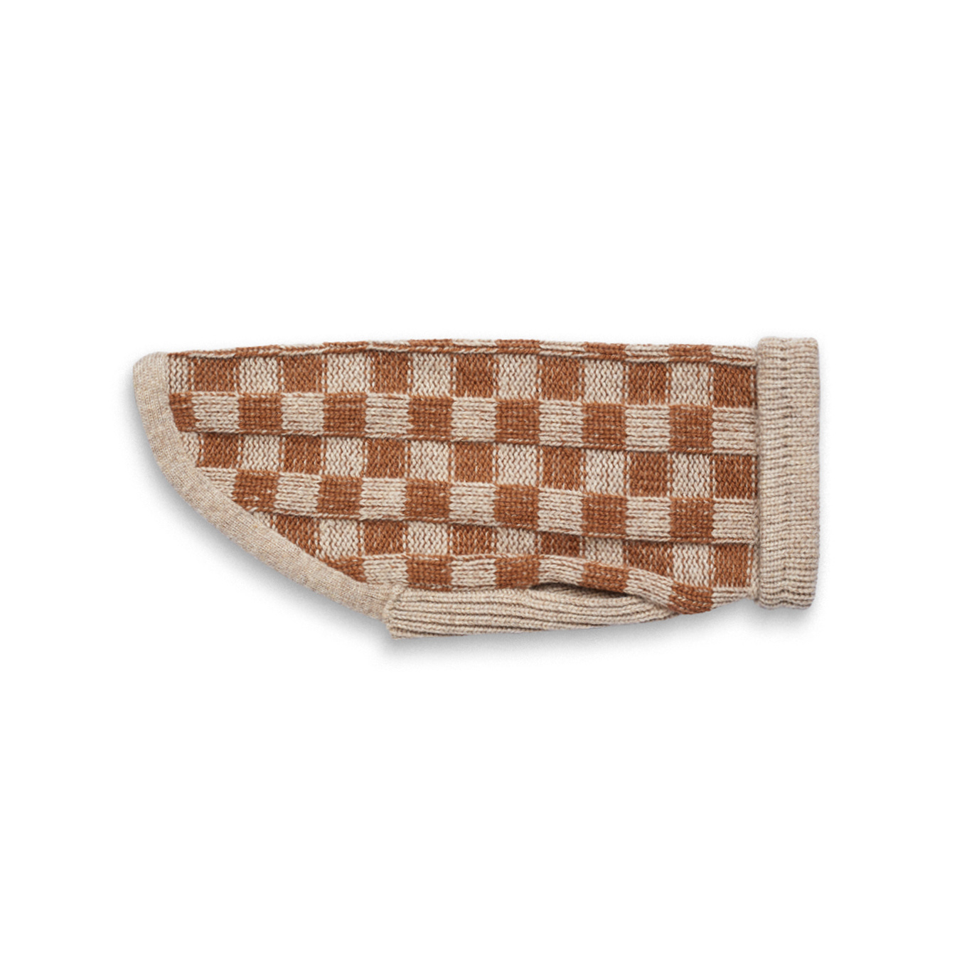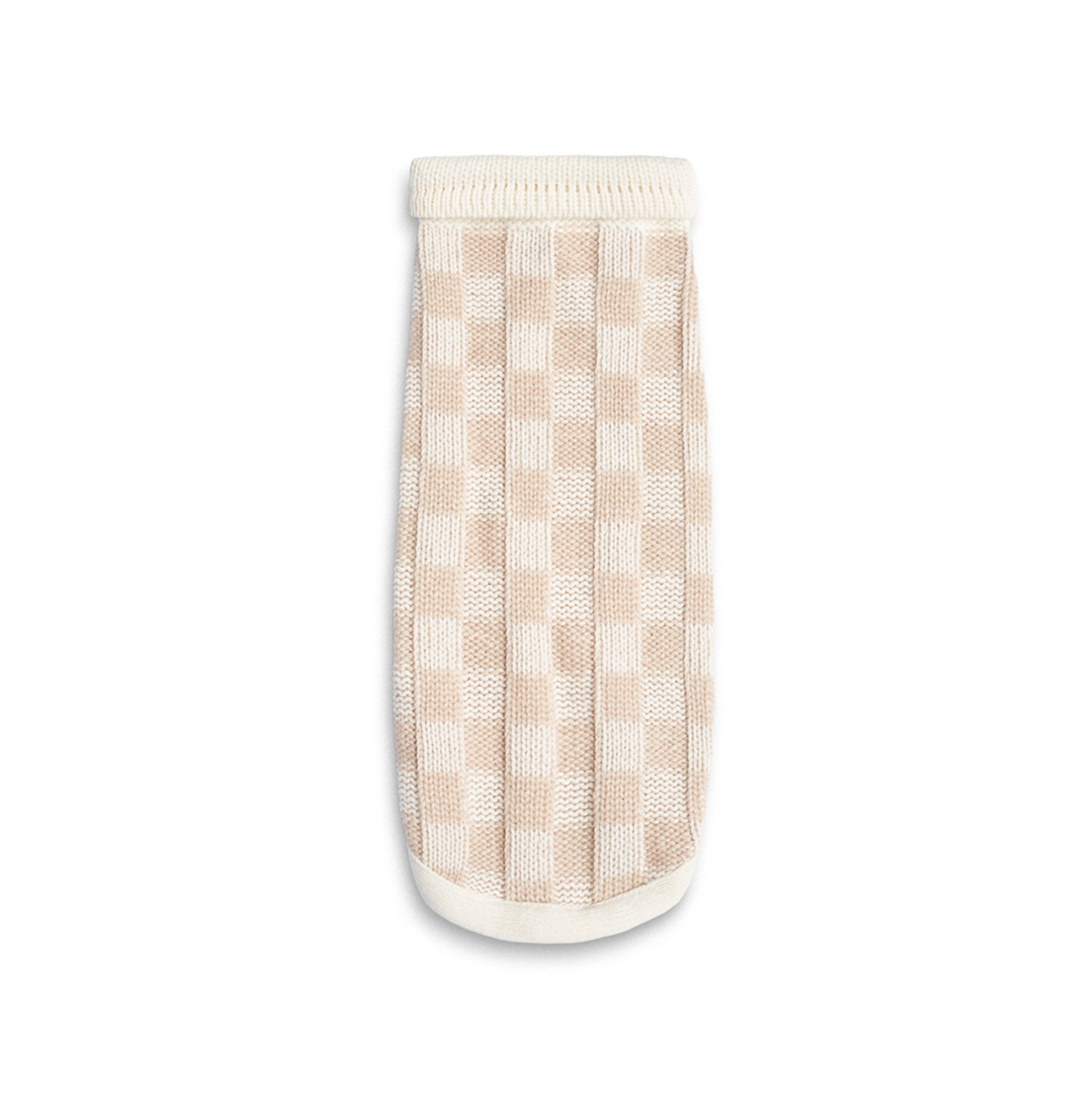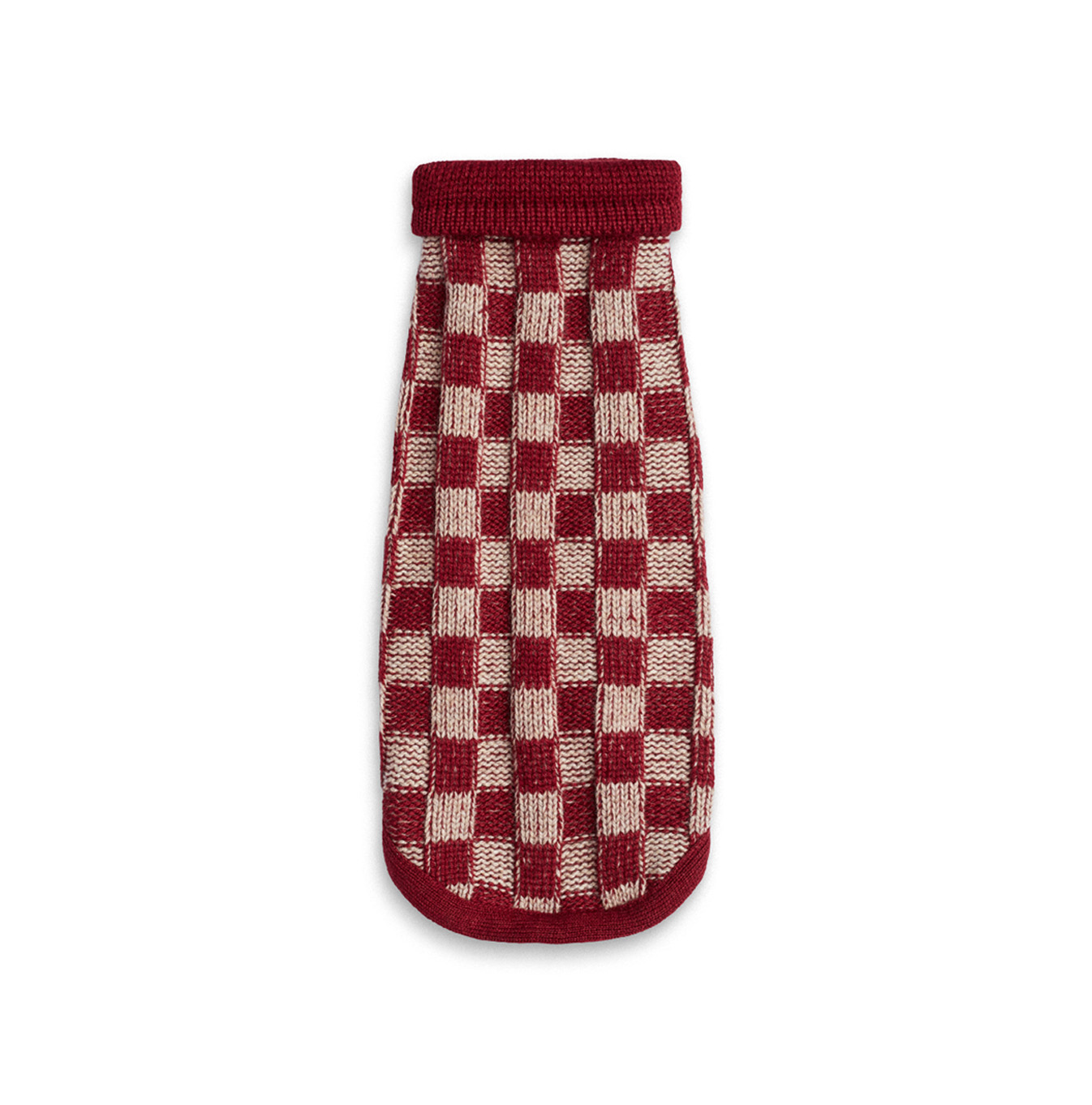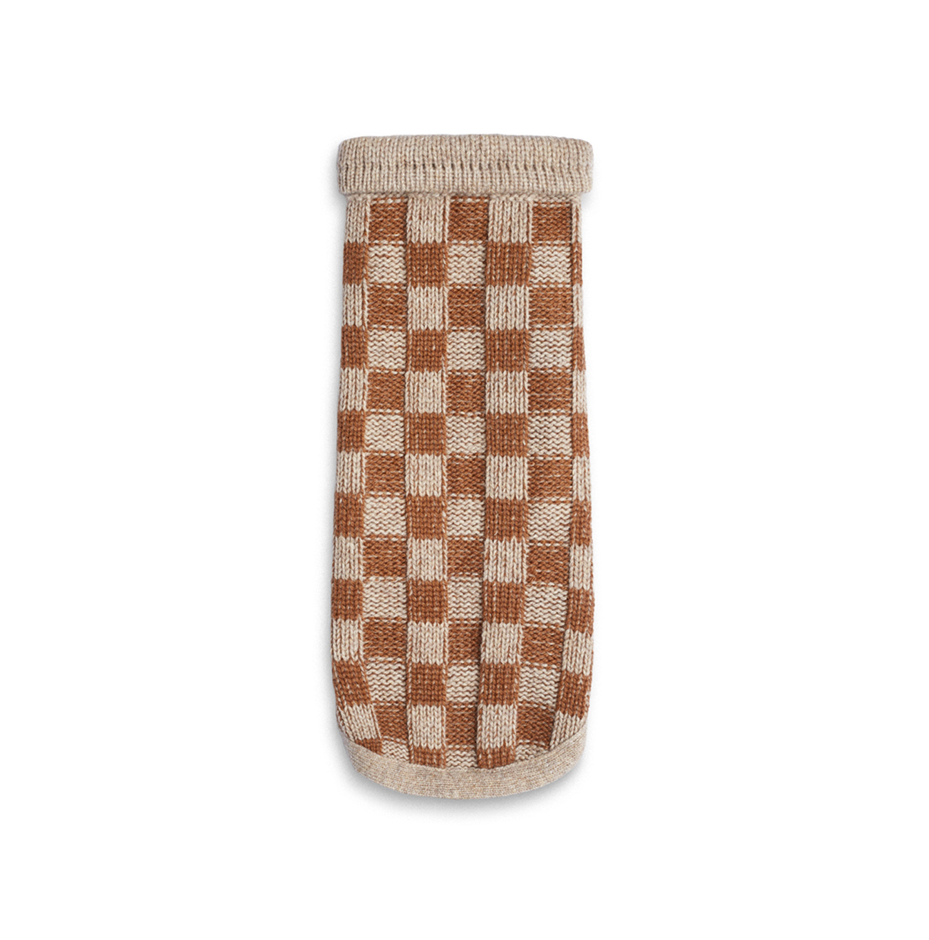 Cappottino Collo alto Lavorazione a dama. Sviluppato in 4 colori: Tortora e Castagno – Natural White e Tortora – Natural White e Nero – Bordeaux e Tortora. Realizzato con filato di pelo Hircus, nobile Cachemire proveniente dalla Mongolia.