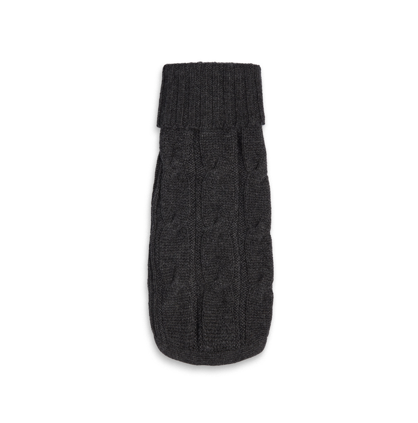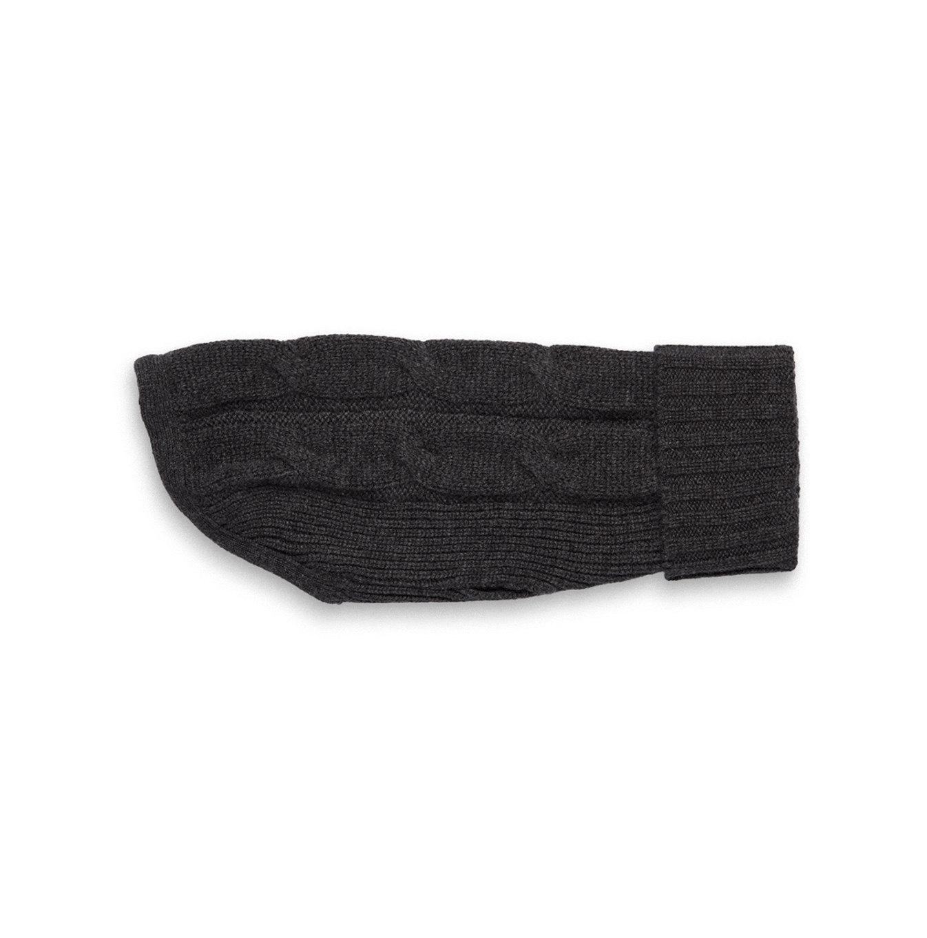 Cappottino Collo alto col. Grigio Carbon, lavorazione trecce grandi al centro. Realizzato con filato di pelo Hircus, nobile Cachemire proveniente dalla Mongolia.