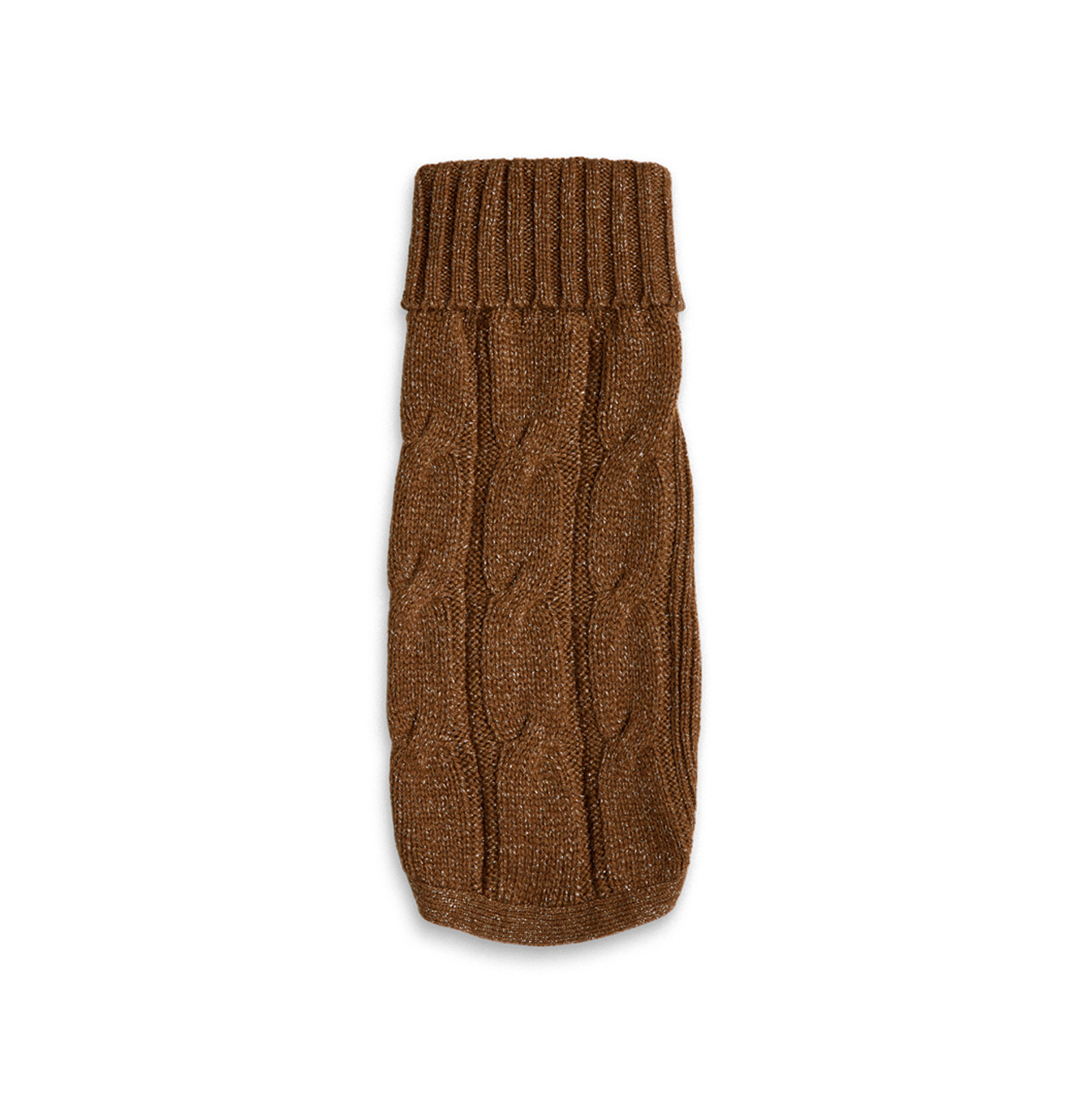 Cappottino Collo alto col. Castagno e Lurex, lavorazione trecce grandi al centro. Realizzato con filato di pelo Hircus, nobile Cachemire proveniente dalla Mongolia.
